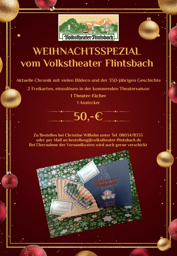 Der Volkstheater Flintsbach kann in diesem Jahr, mit Stolz, auf eine 350-jährige Theatertradition zurückblicken. Seit dem Jahr 1823 wird in unserem eigenen, unter Denkmalschutz stehenden Theatergebäude gespielt.